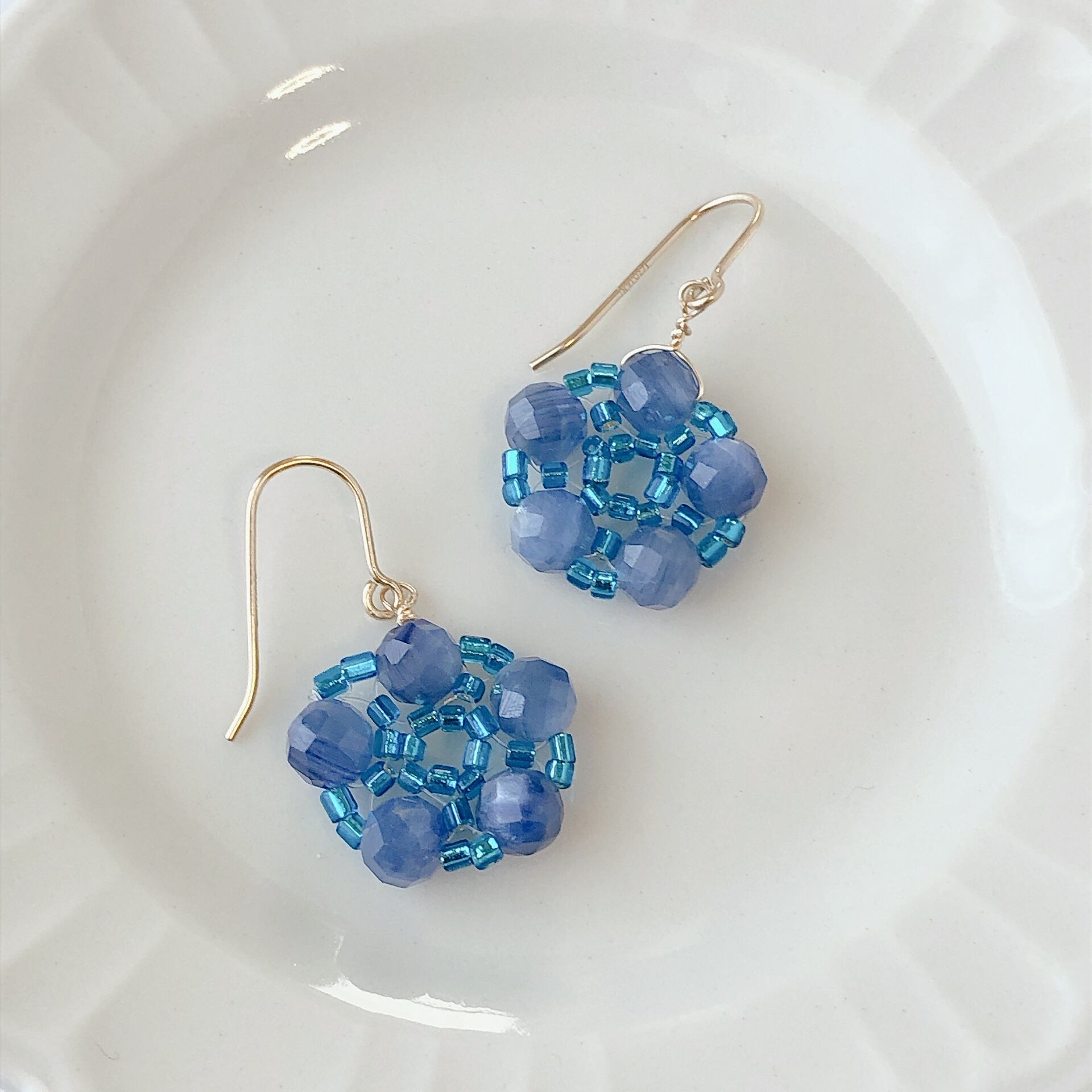 鮮やかな発色のヴィンテージビーズ(1930~50年代)が映え、爽やかなピアス/イヤリングです。